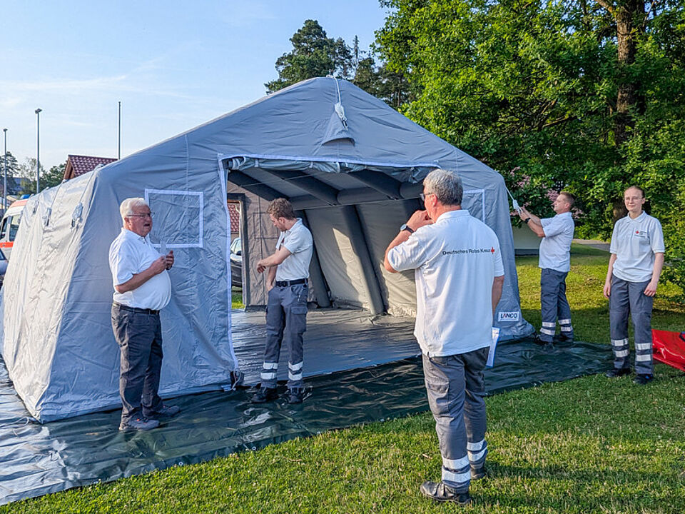 Bereits im Juni konnte das Zelt im Rahmen eines Übungsbetriebs erstmals vollständig aufgebaut und eingehend getestet werden. Dabei zeigte sich, wie wertvoll diese Anschaffung für die Einsatzfähigkeit unseres Ortsvereins ist – und dass wir für den Ernstfall nun deutlich besser gewappnet sind.