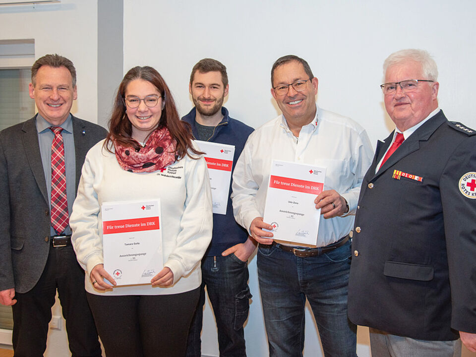 Bei den Wahlen konnten Marco Hölzel und Matthias Rentschler in ihren Ämtern als Kassenprüfer bestätigt. Für langjährige Tätigkeit im Deutschen Roten Kreuz wurden Heiko Funk (15 Jahre), Tamara Goltz und Stefanie Wermke (jeweils 20 Jahre) ausgezeichnet. Zum 40-jährigen Mitwirken konnte Udo Zens gratuliert werden.